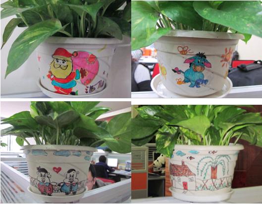 近期,每位员工的办公桌上更换了新的绿色盆栽植物;可总觉得单调的色彩衬托不了这个五彩斑斓的春天,于是进行了“春天里玩涂鸦,个个彰显生机如画,涂出一片空中花园” 的花盆涂鸦DIY比赛。