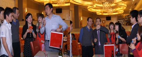 此次年会以三个阶段展开:1,员工相互抽取礼物并送上衷心地祝福,大家在准备礼物上都很用心,增进了同事之间的感情,大家都很开心。