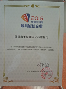 2017年3月28日,2016年华强电子网“优质供应商”颁奖盛典在深圳圣廷苑酒店隆重举行。“华强电子网优质供应商评选活动”已经成为了元器件分销行业的一项盛事,行业瞩目,千家企业同台竞技,交流心德体会,分享成功的喜悦,为元器件分销带来了新的活力。在本次活动中,英特翎电子荣获“2016年华强网最具诚信企业”称号。