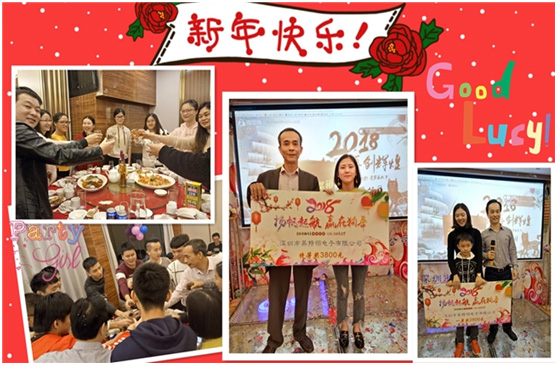 金鸡纳福去,赢在犬年来!2018年1月26日,英特翎“赢在犬年”新春年会在好当家酒楼隆重举行。英特翎电子总经理王乌海先生携公司高管及全体员工欢聚一堂,共度联欢。本次年会在英特翎电子有限公司总经理王乌海先生激情扬溢的致辞中拉开帷幕。他向年会的所有来宾表示衷心的感谢及热烈的欢迎,同时也肯定了大家在2017年的努力和进步,期待在新的一年里我们能扬帆起航,再创辉煌。